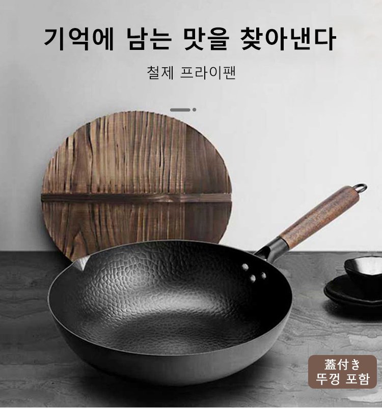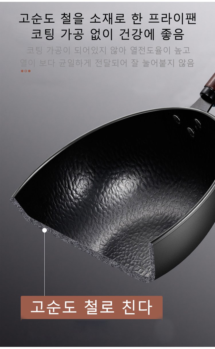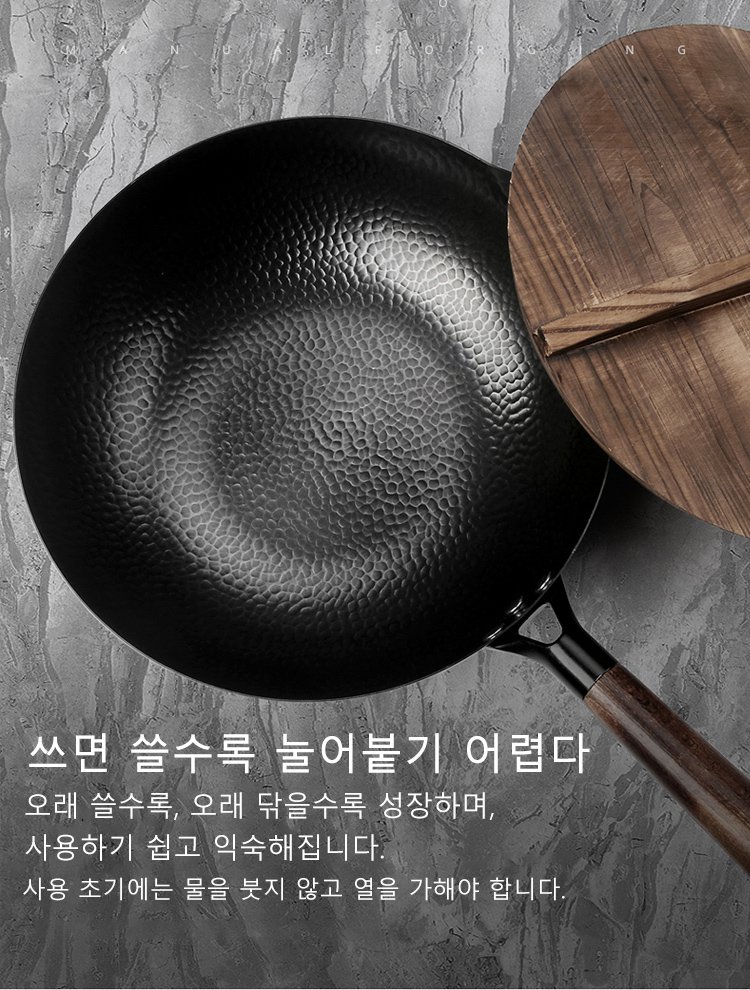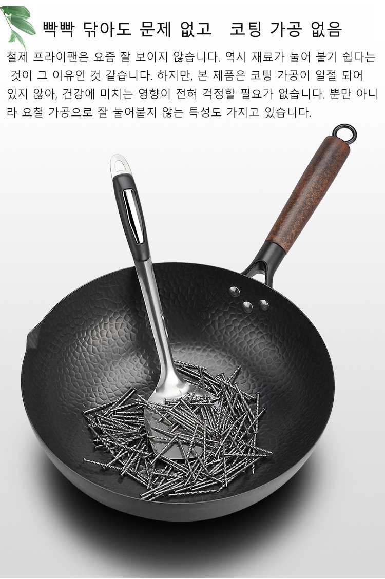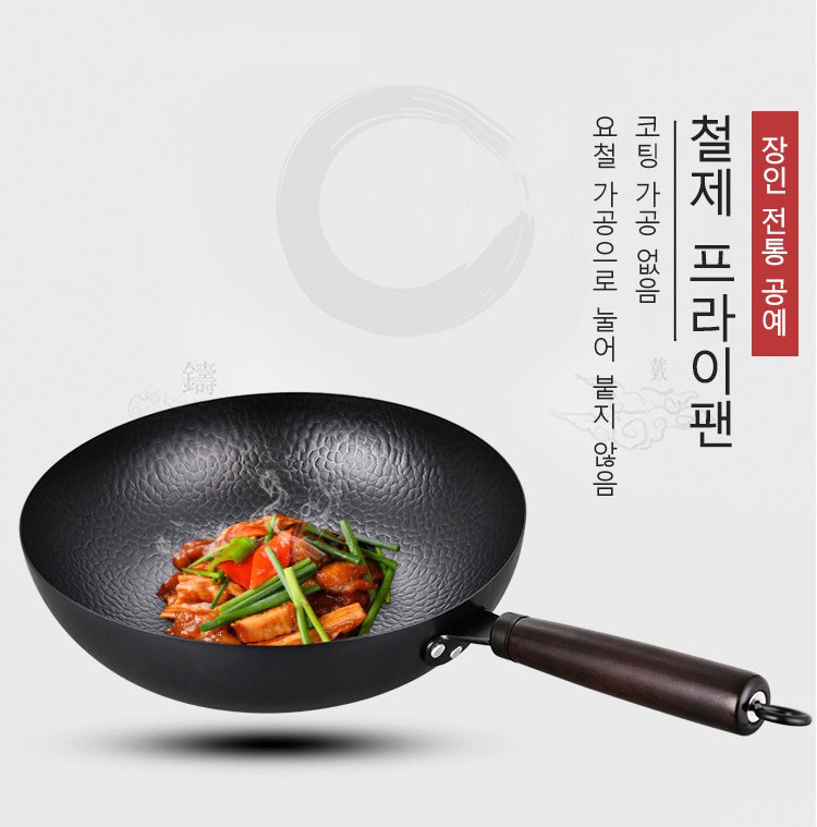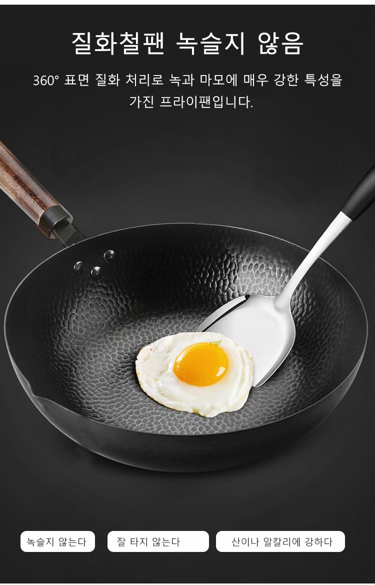 질화 처리로 녹과 마모에 매우 강한 특성을가진 프라이팬입니다.건강 안전,음식의 원액 그대로의 맛을 살리다.